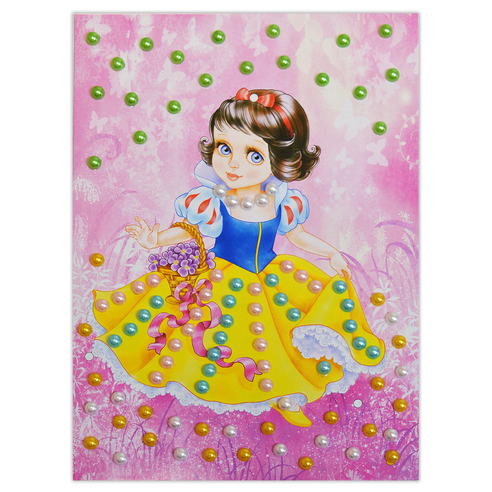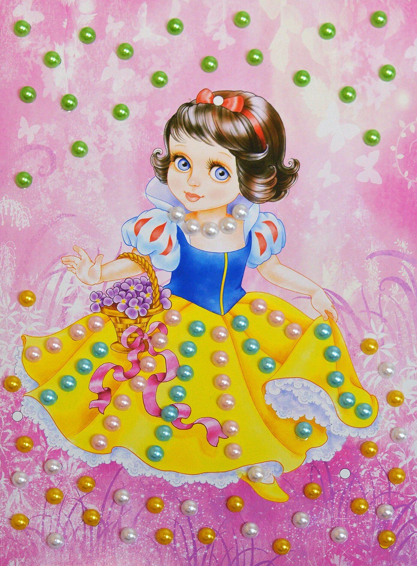Красивая картинка с героем сказки, которую нужно украсить нежными перламутровыми бусинами с мягким мерцающим блеском, обязательно привлечёт внимание ребёнка. Украсить картинку очень легко: просто приклейте бусинки, на которые уже нанесен клеевой слой, на картинку, ориентируясь по цветам, и картинка приобретёт по-настоящему волшебный вид.