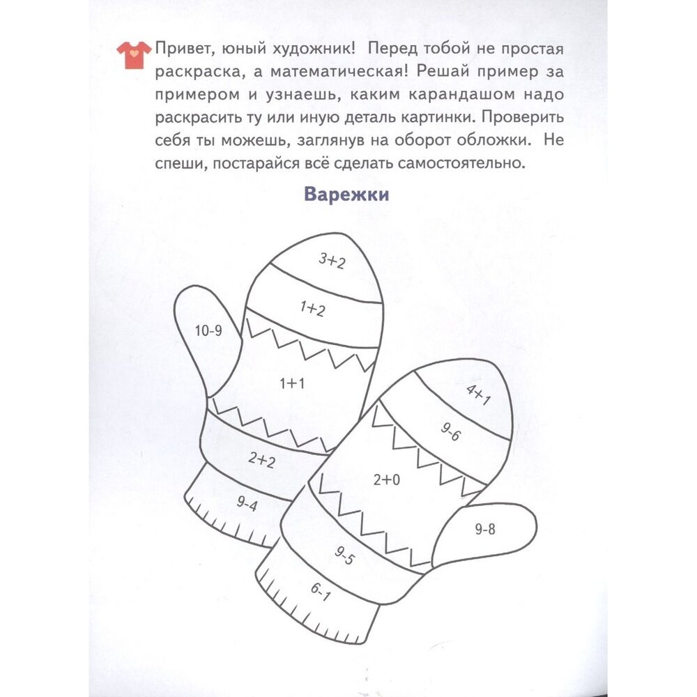 Привет, юный художник! Перед тобой не простая раскраска, а математическая! Решай пример за примером и узнаешь, каким карандашом надо раскрасить ту или иную деталь картинки. Проверить себя ты можешь, заглянув на оборот обложки. Не спеши, постарайся всё сделать самостоятельно.