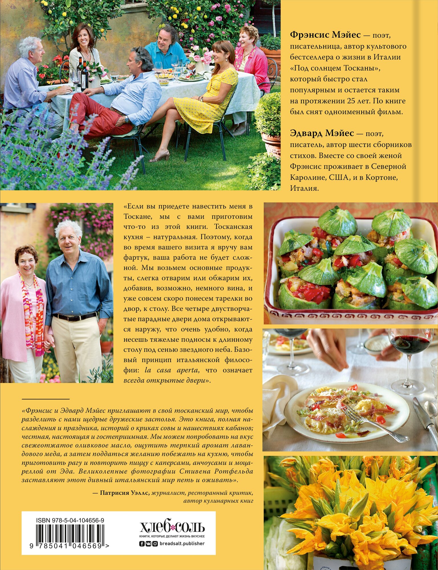 Фрэнсис Мэйес, автор популярного бестселлера «Под солнцем Тосканы», вместе со своим мужем Эдвардом уже много лет считают Тоскану своим домом. И для них тосканская еда — это символ домашнего уюта, праздничных застолий и душевных встреч с друзьями. Они собрали рецепты, которые копили десятилетиями, и написали книгу, полную наслаждения, радости, счастья и тосканского солнца. Книга выстроена как традиционный тосканский ужин: вы начнете с антипасти, а закончите десертом и дижестивом в компании хороших друзей. Авторы делятся рецептами более 150 своих любимых блюд, советами и рекомендациями, а также атмосферными фотографиями и описаниями тосканских кулинарных традиций.