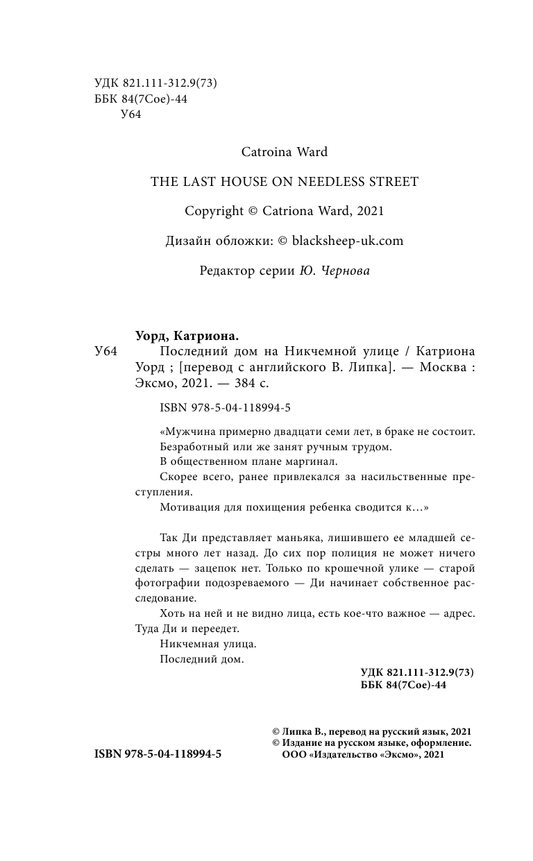 Последний дом на Никчемной улице (Катриона Уорд); Эксмо, Inspiria, Редакция 1, 2021