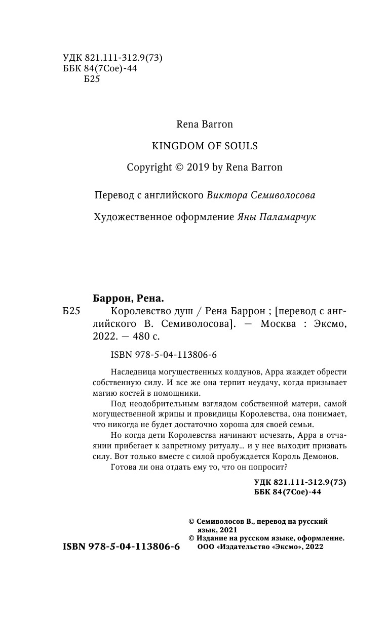 Книга: Королевство душ (Рена Баррон); Эксмо, Inspiria, Редакция 1, 2021