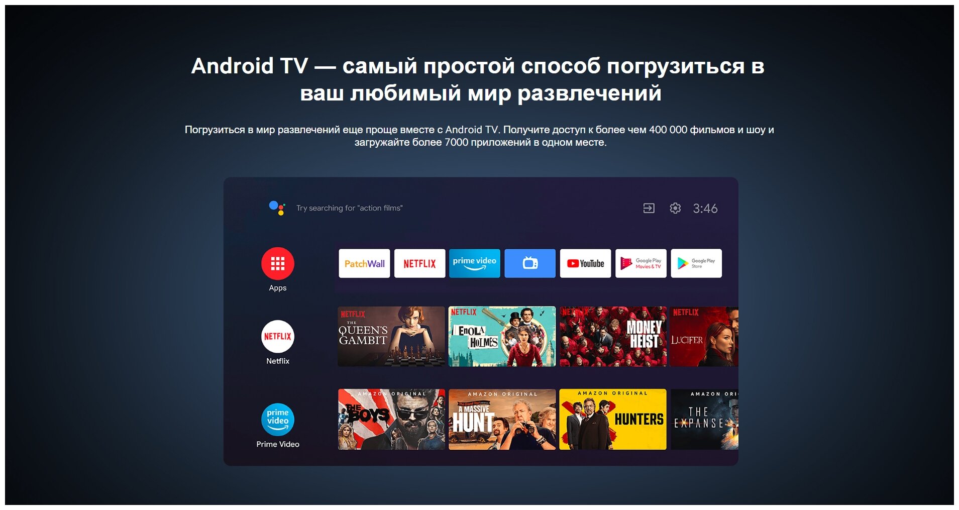 Нажмите кнопку Google Ассистента на пульте ДУ, чтобы попробовать еще больше функций на вашем телевизоре с помощью голосового управления. Попросите Google управлять вашим телевизором, отвечать на вопросы и просматривать ваш календарь. Пусть он управляет всеми устройствами умного дома.