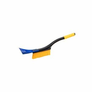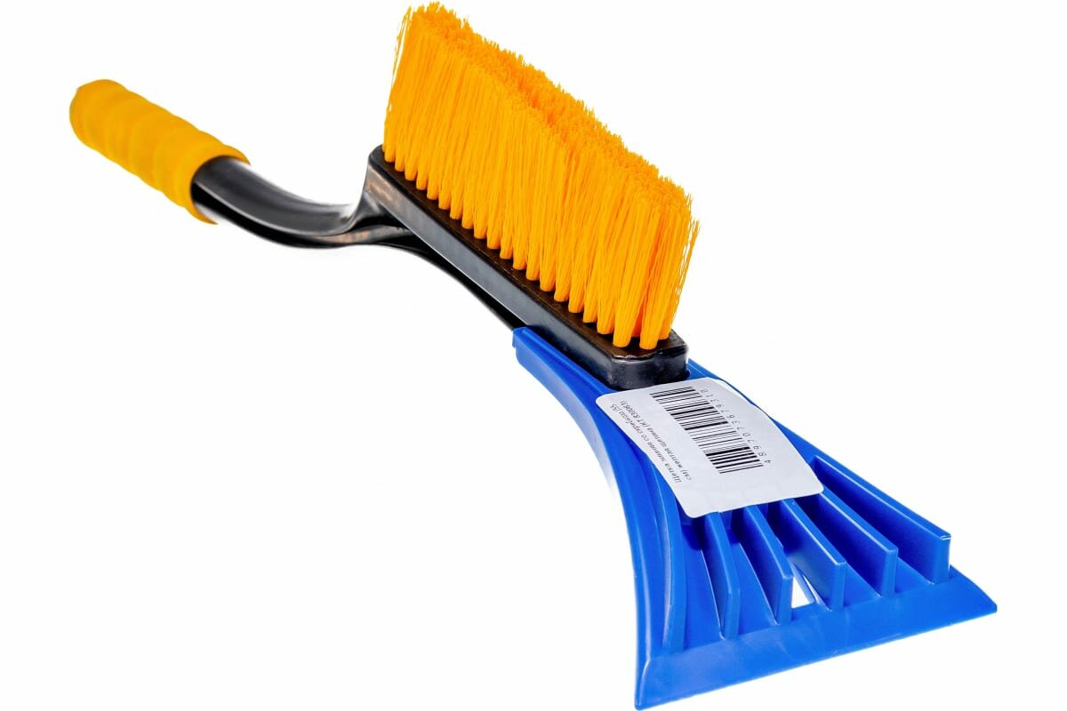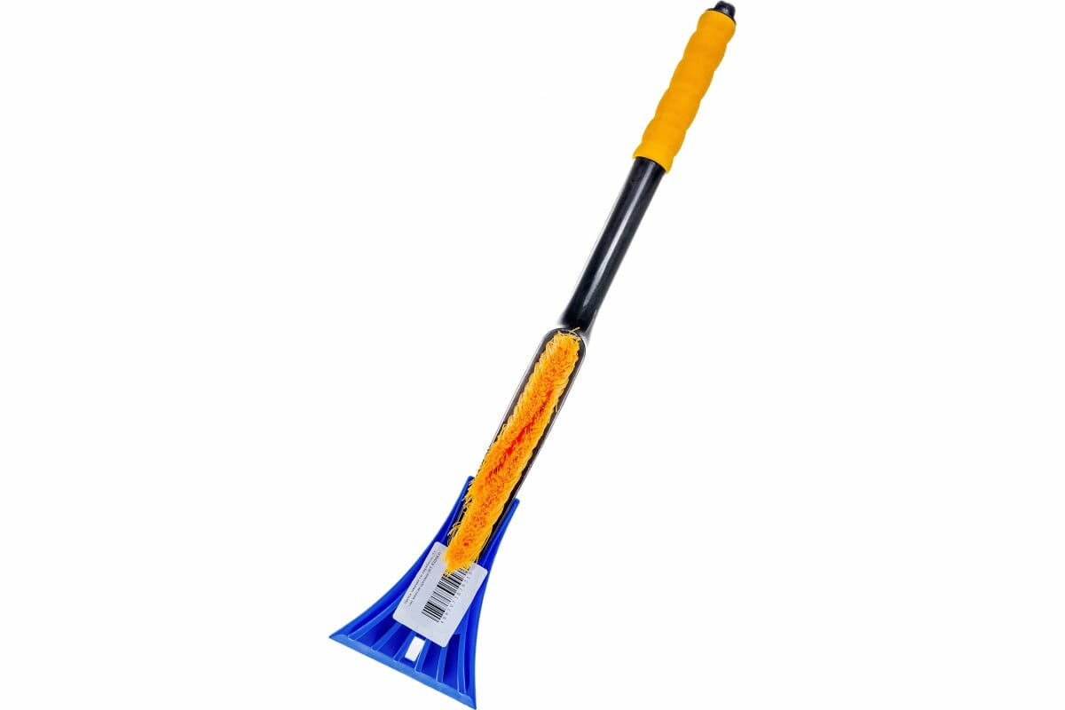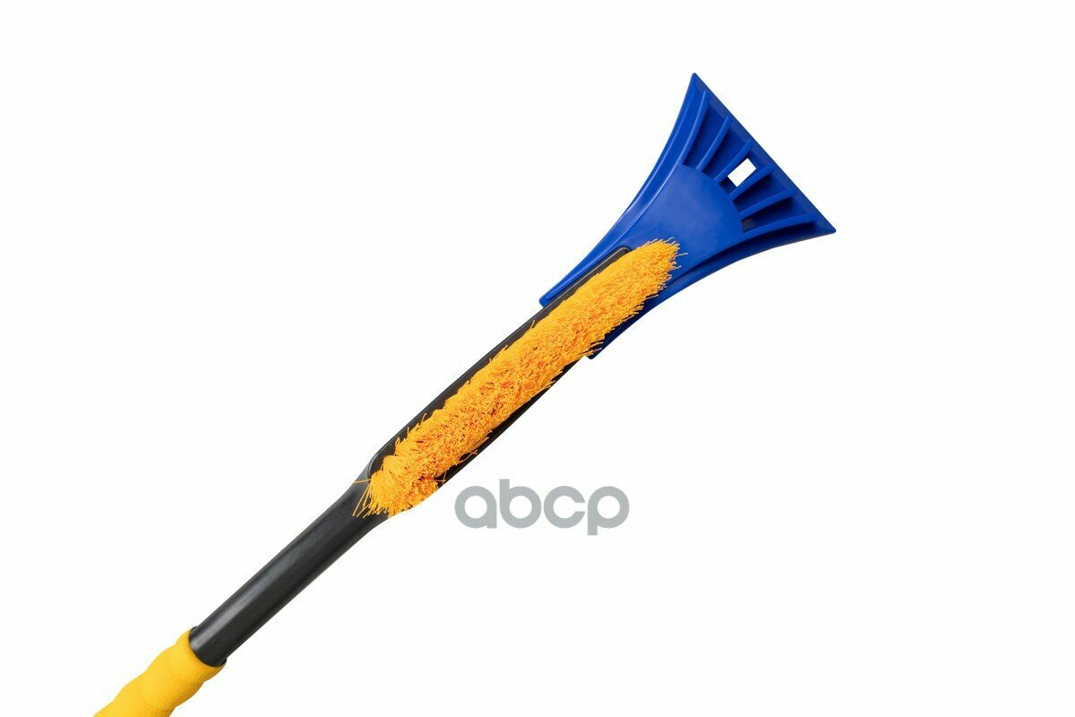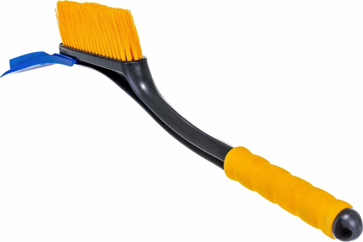 Длина щетки - 55 см. Щетка имеет трехрядную щетину, которая позволяет легко убирать даже залежавшийся снег с автомобиля. Также щетка имеет съемный скребок из морозостойкого пластика и эргономичную ручку.