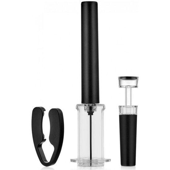 Для того, чтобы напиток в открытой бутылке не потерял свои вкус и качества, существует вакуумная пробка. Вернее – целый набор Wine Time из трех предметов: вакуумного штопора, ножа для удаления фольги, вакуумной пробки.