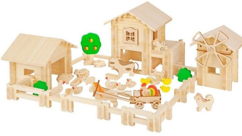 Очаровательную модель фермерского хозяйства ваш малыш смастерит своими руками из 340 деталей конструктора "Лесовичок". В умелых ручках деревянные брусочки превратятся в прочный загон и уютные домики для обитателей фермы.