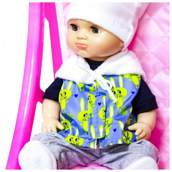 Какая девочка не мечтает получить в подарок пупса, да еще в коляске! Набор "Прогулка с малышом" - это настоящий девчачий восторг! Красивый пупс с забавным личиком младенца в нарядной курточке, шапочке и пинетках уже претендент на любимца в детской игре. Розовая вместительная коляска - мечта маленькой мамы. В ней можно не только возить пупса, но и складыватьсдетские принадлежности в корзинку, как в настоящей коляске.