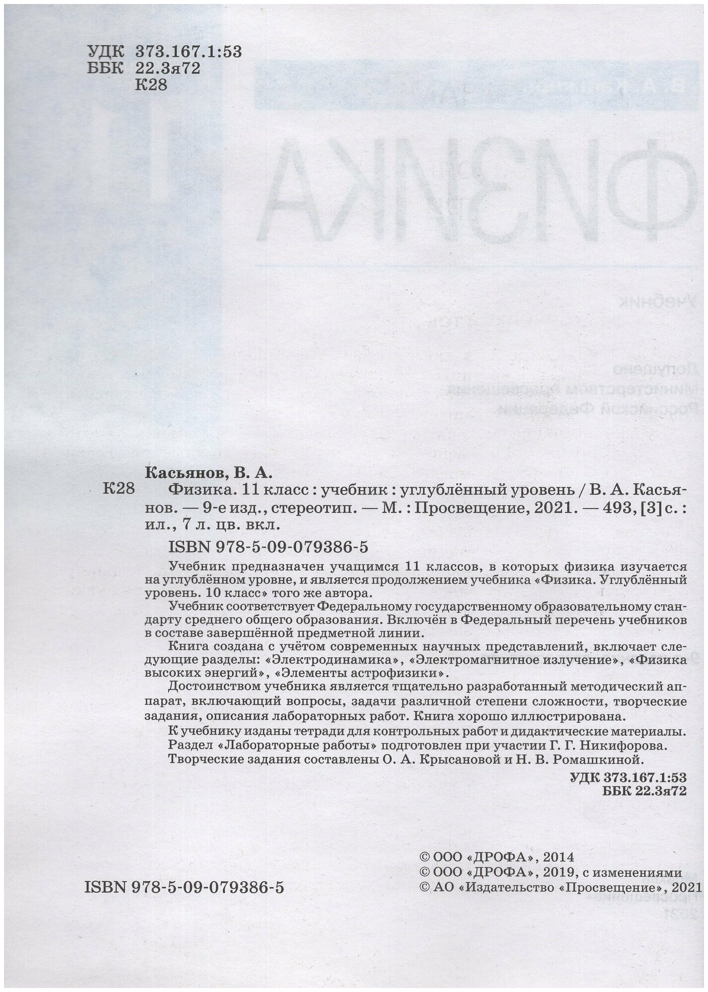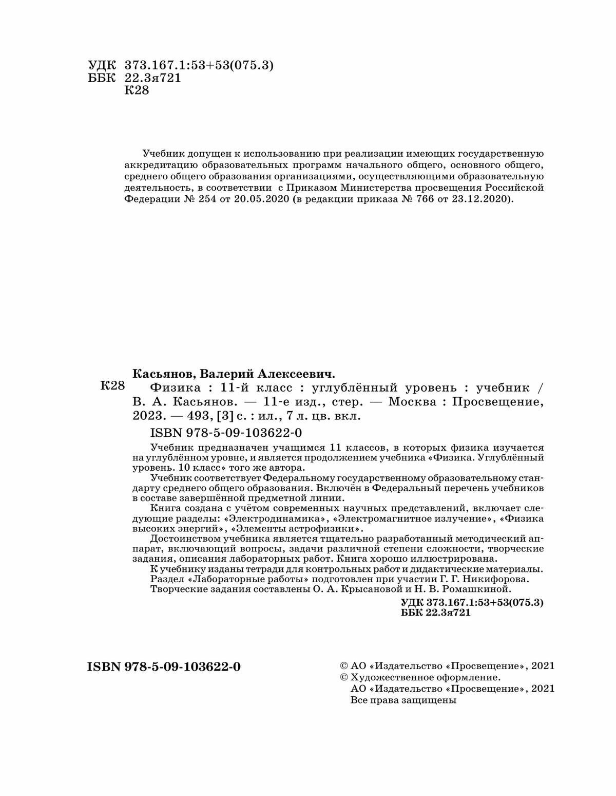 Физика 11 класс Углубленный уровень Учебник (Касьянов Валерий Алексеевич); Дрофа, 2021