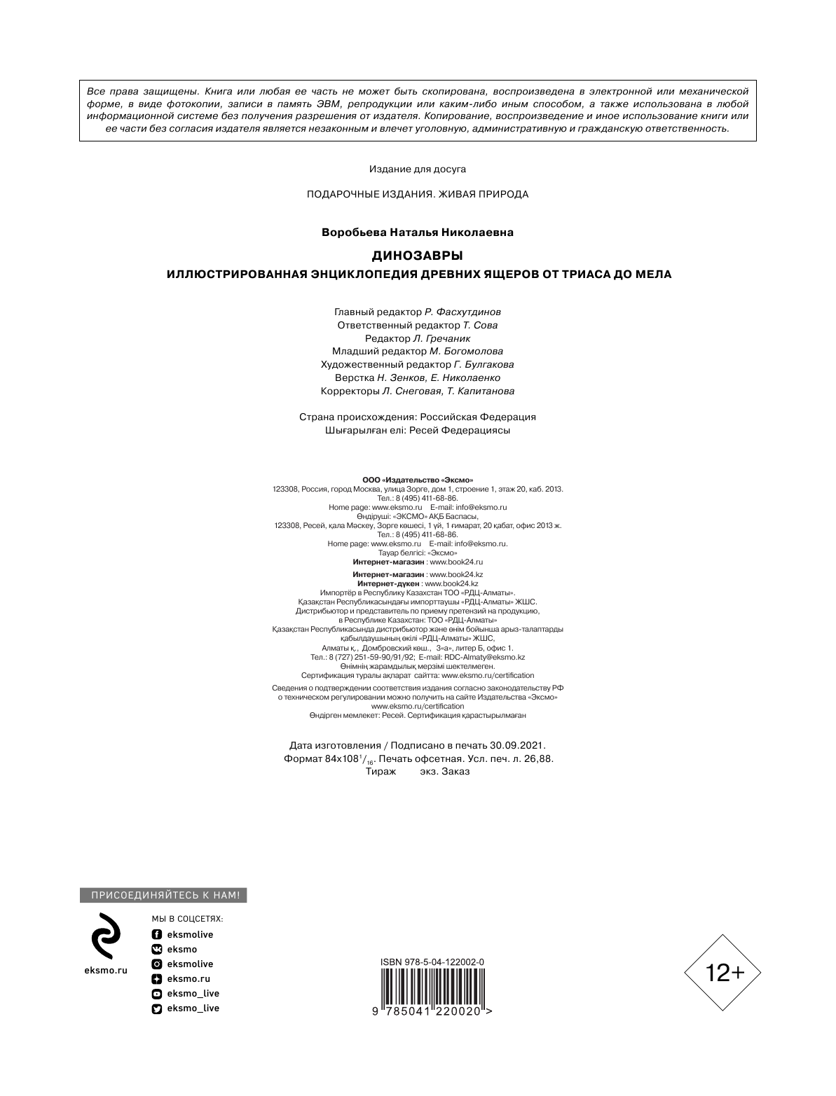 Динозавры. Иллюстрированная энциклопедия древних ящеров от триаса до мела (Воробьева Наталья Николаевна); ООО "Издательство "Эксмо", 2022