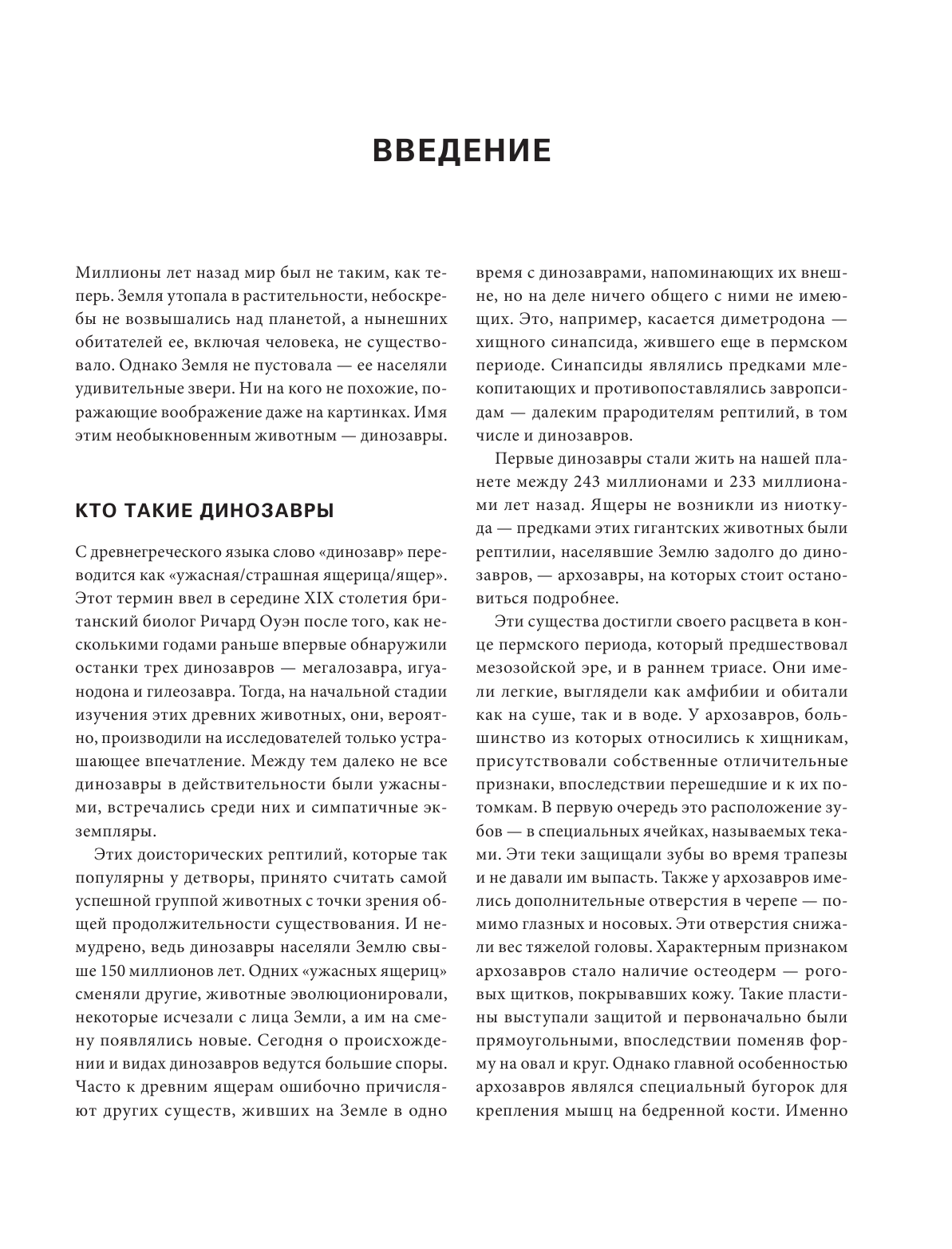 Книга содержит невероятное количество информации о динозаврах, поэтому вы точно сможете найти для себя что-то новое. Она для тех, кто хочет очень глубоко окунуться в эту тему, расширить кругозор. Больше подойдет для взрослой аудитории, нежели для детей. Ещё поражает оформление: красочные иллюстрации, качественная бумага, информация четко структурирована. Поэтому книга достойна того, чтобы занимать особое место на полках.