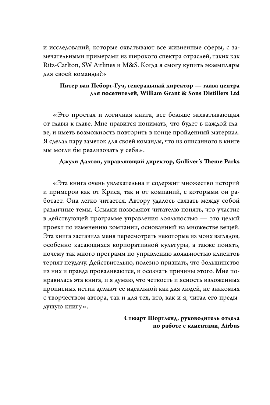"Лояльность чаще всего пониают, как нечто вроде: всучить клиентам в обмен на e-mail карты лояльности, а затем бомбардировать их письмами о скидках и розыгрышах. Эта книга раскрывает, что такое настоящая лояльность - убийственное оружие бизнеса, позволяющее создать капитализацию бренда на долгосрочную перспективу.