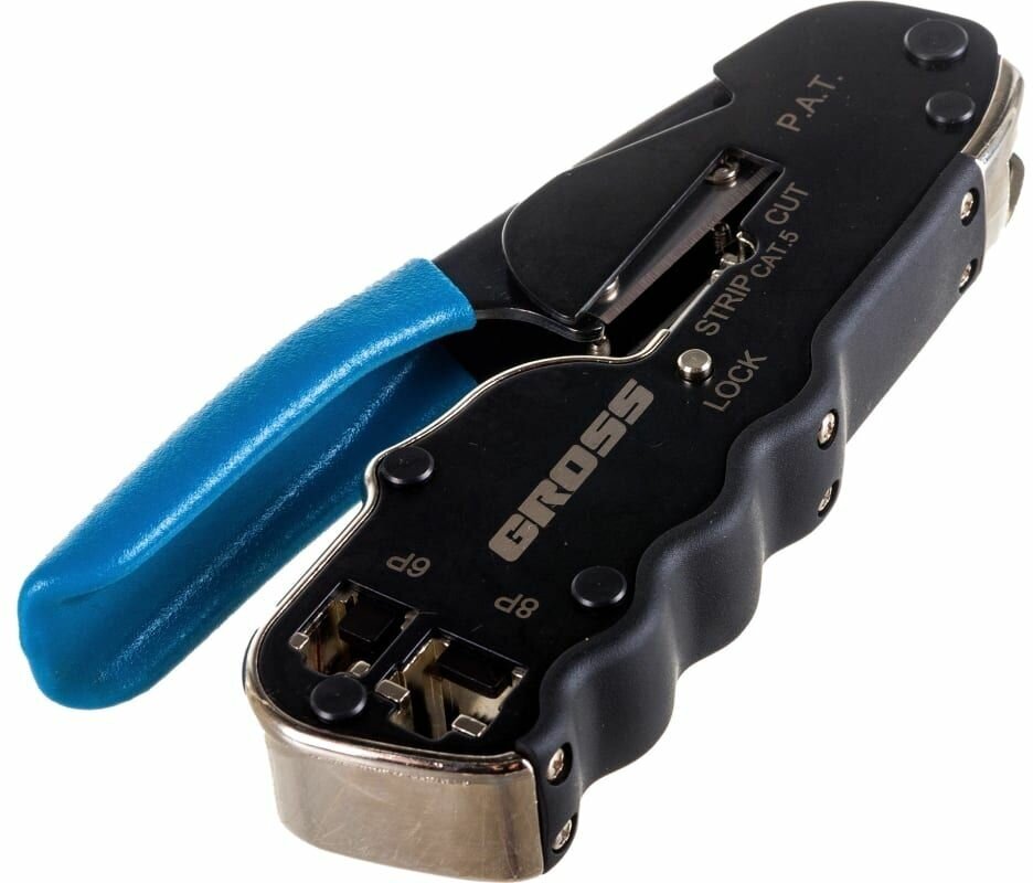 Клещи для обжима телефонных и компьютерных клемм RJ45 8P и RJ11/12 6P компакт. CAT5// Gross 17723 (серо-голубой)