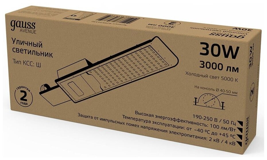 **Светильник ЖКХ светодиодный Gauss Avenue** с кривой силой света типа Ш предназначен для освещения автомобильных дорог с малой и средней интенсивностью движения, улиц и парковых аллей. Данные светильники являются эффективной и экономичной заменой уличным светильникам РКУ с лампами ДРЛ и ДНаТ.