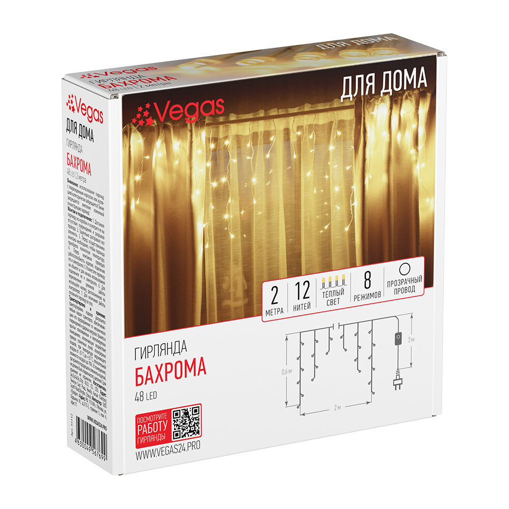 Гирлянда Vegas фор.:бахрома 48лам. ПВХ/медь 55112