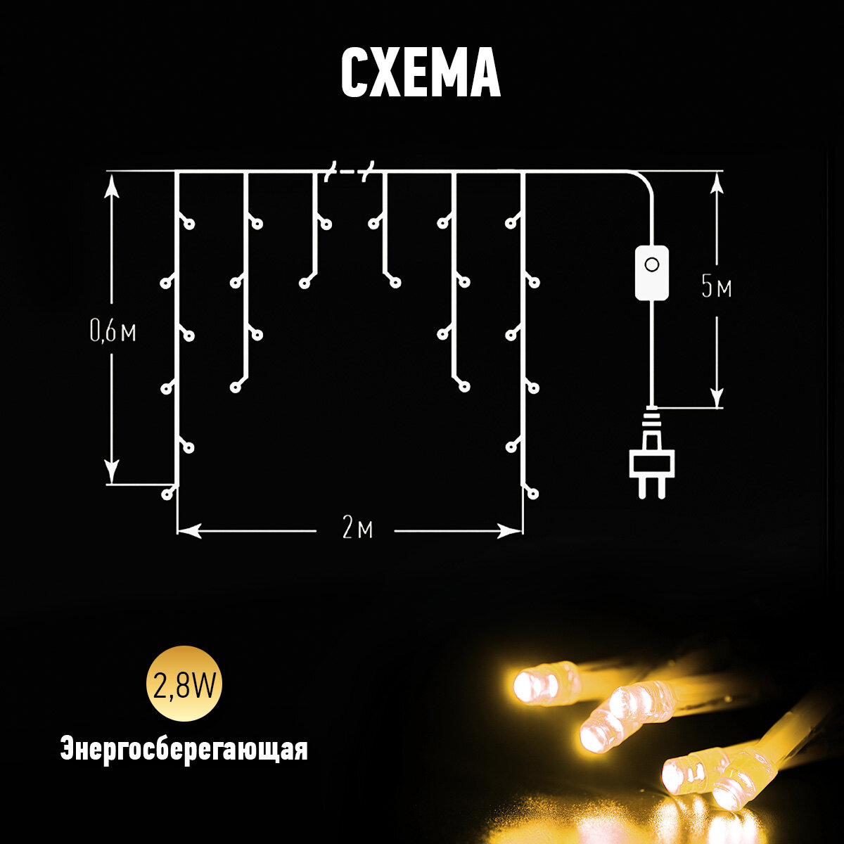 | Длина гирлянды | 2 м |