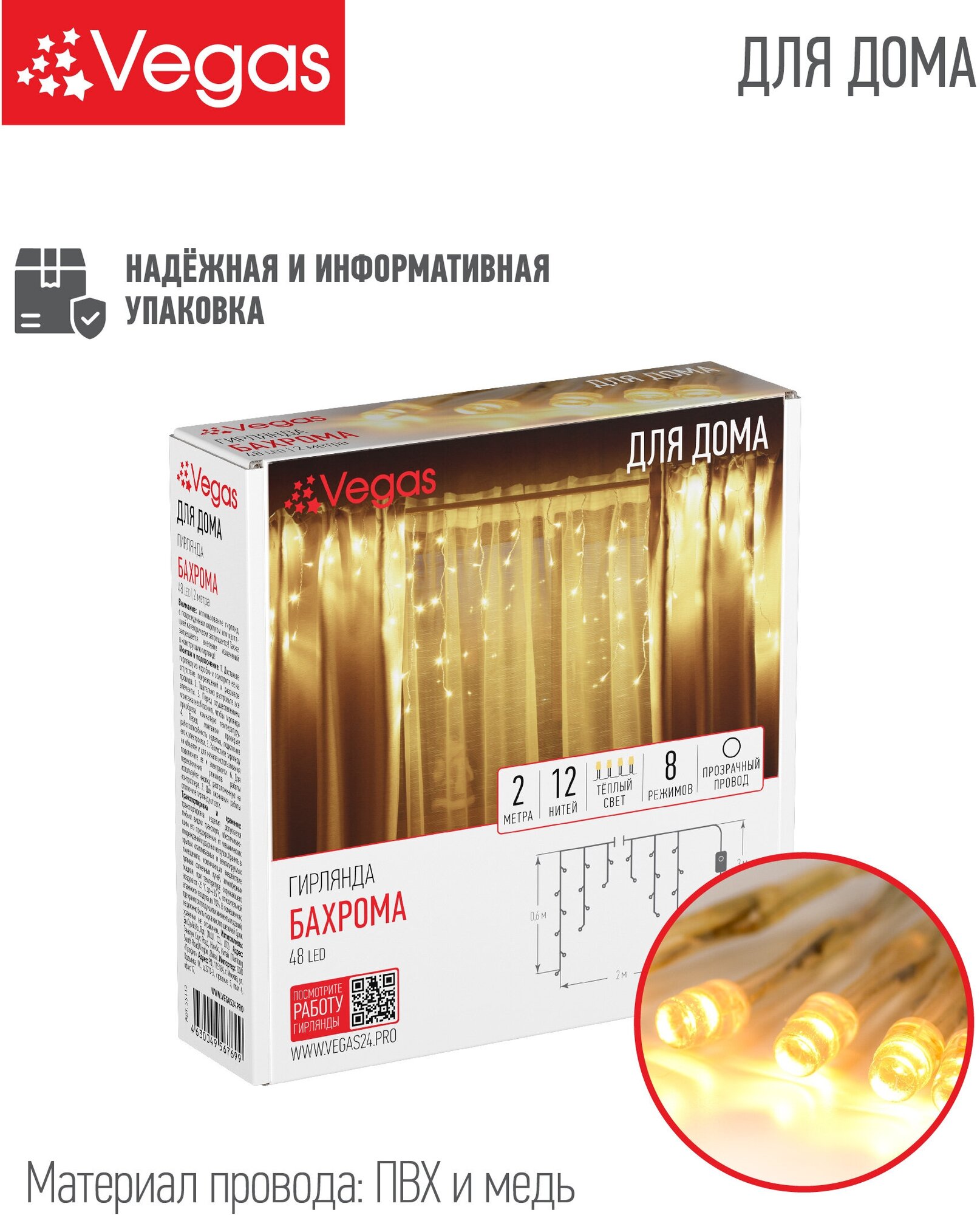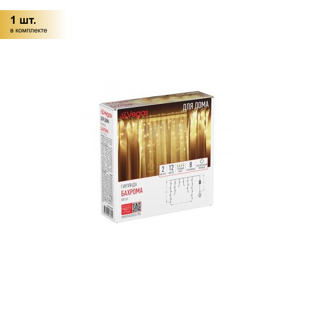 На сегодняшний день товар «Гирлянда Vegas фор.:бахрома 48лам. ПВХ/медь 55112» можно купить с кешбеком в 1 магазине: Яндекс.Маркет