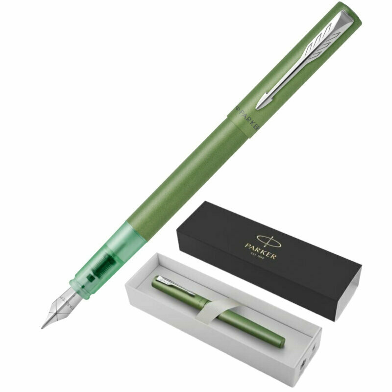 Ручка перьев. Parker Vector XL F21 (2159762) зеленый мет. F сталь нержавеющая в компл.:картридж 1шт