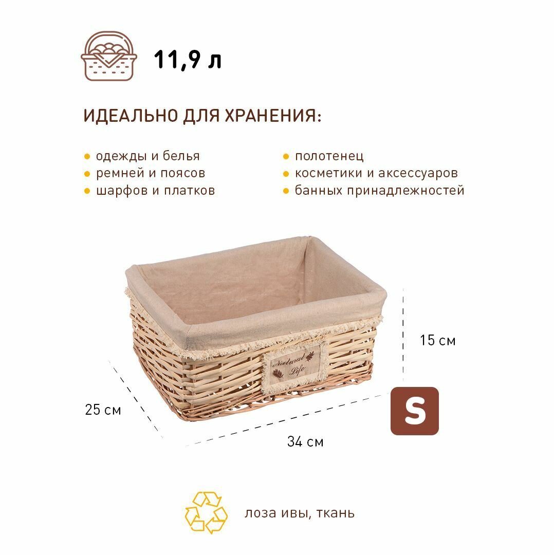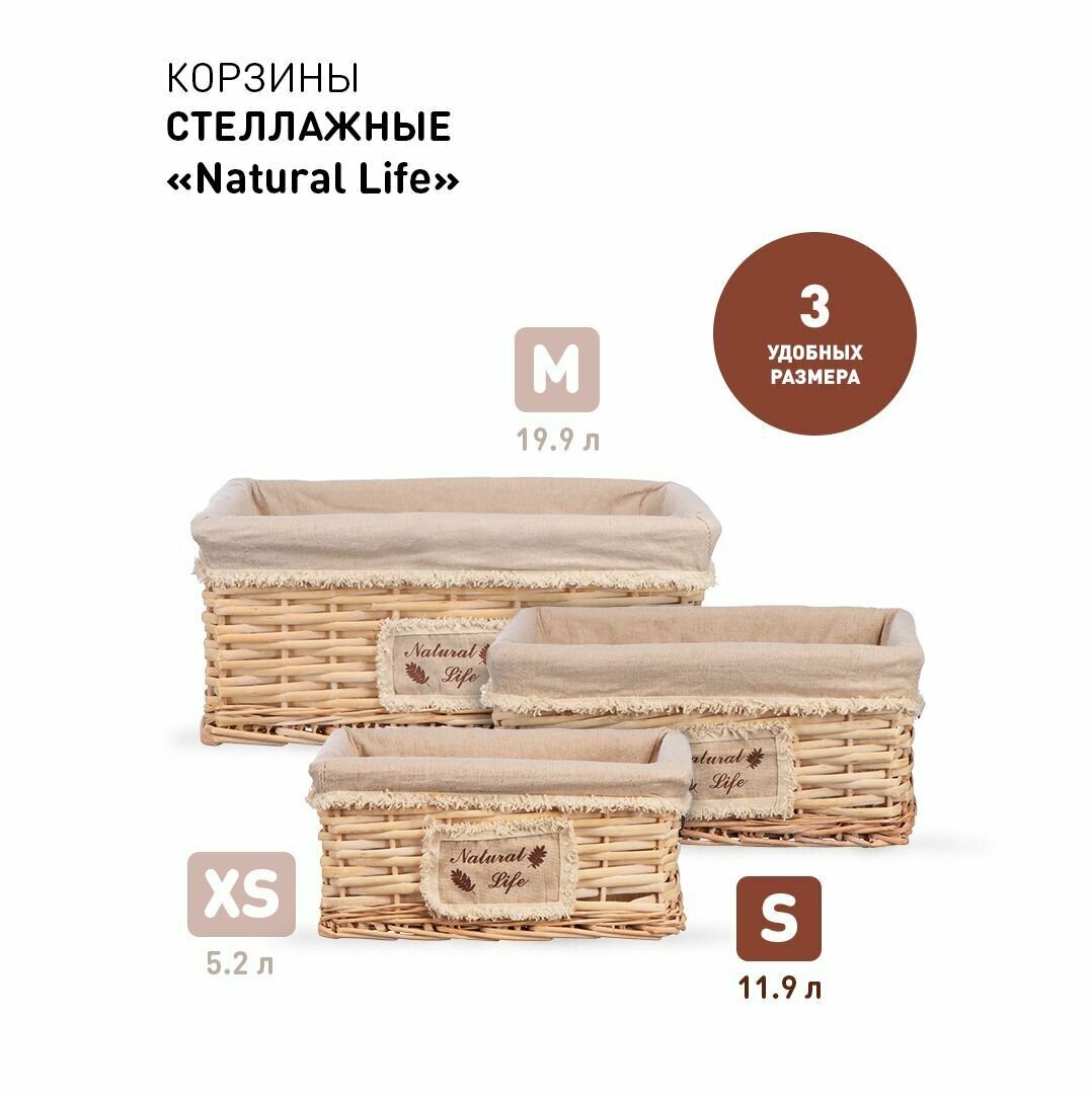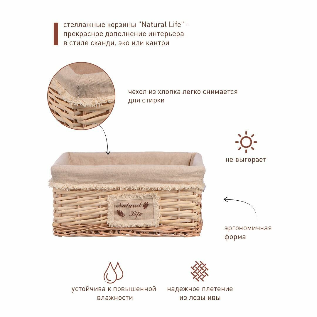 Корзина стеллажная "Natural Life" Д280 Ш190 В130 натуральный Без бренда