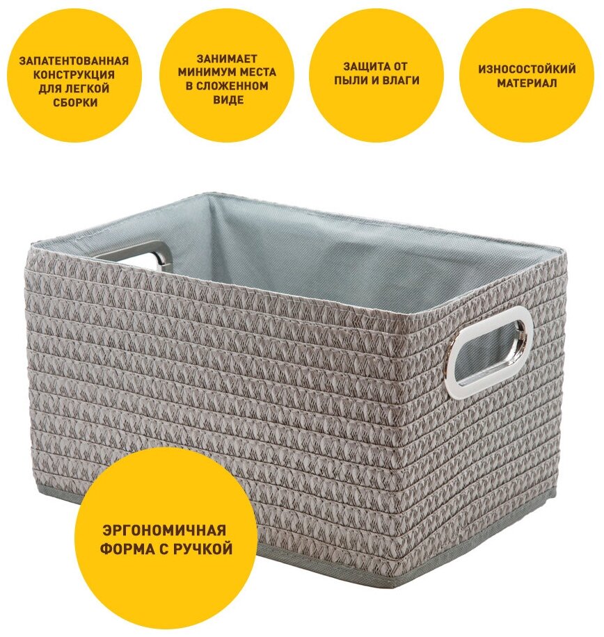 Короб для хранения складной Д310 Ш220 В190 серый Без бренда