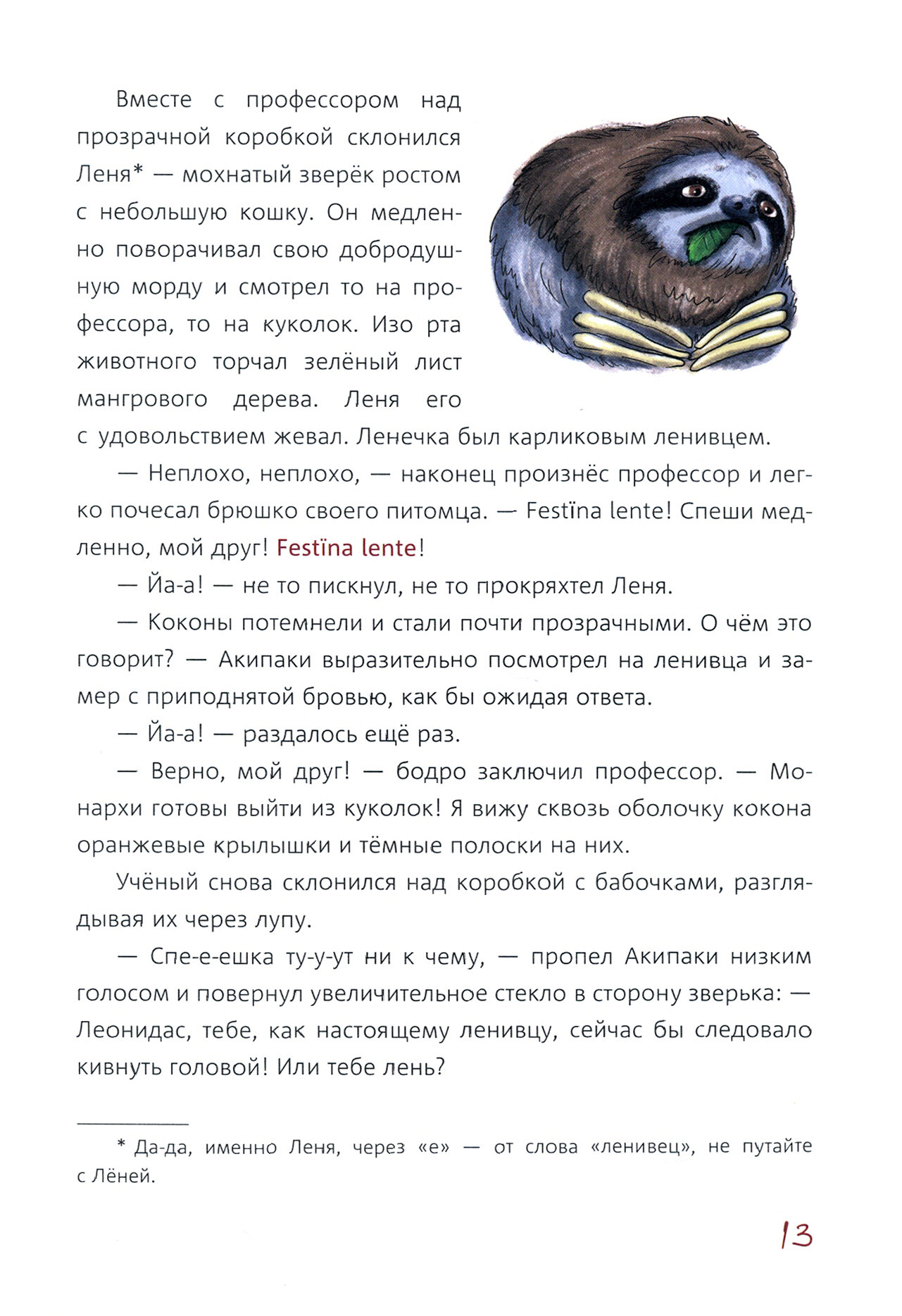Именно таков герой этой книги - неунывающий профессор Акипаки. Он путешествует по миру вместе с карликовым ленивцем Ле-енечкой и находит интересные, парадоксальные и одновременно с этим полезные идеи (безумные и непригодные на первый взгляд, но это только на первый!), а заодно показывает, как тесно связаны в нашем мире разные науки - математика и зоология, механика и ботаника и даже физика и лирика. Любую проблему Акипаки превращает в задачу, мастерски её решает и при этом ненавязчиво обучает такому искусству своих учеников и читателей.