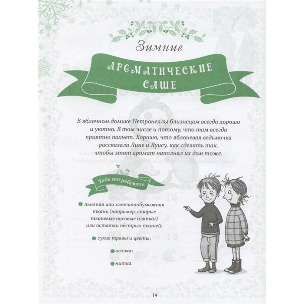 Лина и Луис всегда с нетерпением ждут новогодних каникул, ведь впереди семейные праздники. Близкие и друзья собираются за праздничным столом, наряжают ёлку, обмениваются подарками и тёплыми поздравлениями. Чтобы ожидание праздника было интереснее, Петронелла подготовила для тебя и близнецов настоящий волшебный адвент-календарь! День за днём нужно выполнять задания, отгадывать загадки, печь кексы и пироги по авторским рецептам и читать волшебные истории про яблоневую ведьму и её друзей - и время пролетит весело и незаметно. Счастливого Нового года и Рождества! Для детей среднего школьного возраста.