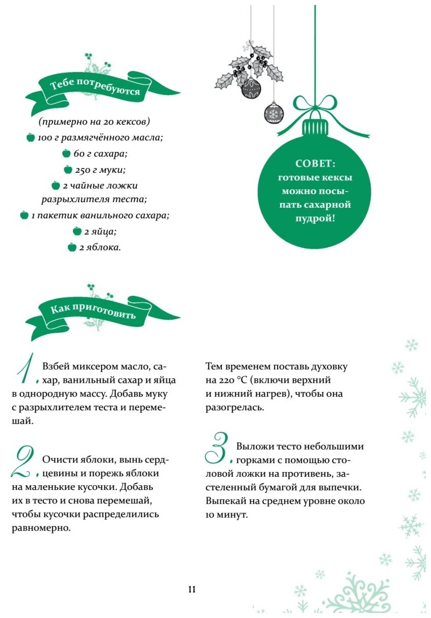 Кто не любит Адвент-календари, где открывая окошки можно найти различные загадки и головоломки? В этой книге еще и новогодние рецепты вкусных кексов и печенья от ведьмочки, которые дети с удовольствием приготовят вместе с вами в преддверии новогодних праздников. Также всем понравятся интересные инструкции по рукоделию, которые помогут сделать ваш дом уютным. Книга очень красочная, рекомендую.