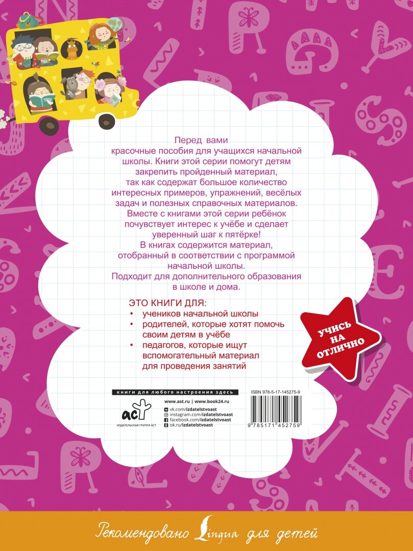 Более подходящее название для этой книжки - брошюра. В ней схематично представлены самые важные правила грамматики английского языка для детей, учащихся в начальной школе. Для детей постарше не подойдет, в ней слишком мало информации. Будет удобна, если вы не хотите покупать полноценный учебник. Упражнений в книжке нет, только схемы правил с несколькими примерами.