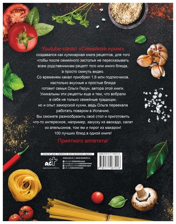 Прекрасная книга рецептов от популярный семьи блогеров, я уже была знакома с их рецепта с канала, они очень вкусные и по-настоящему домашние, люблю такое, поэтому без сомнений приобрела и данную кулинарную книгу. И не разочаровалась, стоимость за такое качество очень хорошая. Внутри мнооо изображений готовых блюд, каждый рецепт отдельно оформлен, все написано понятно и просто