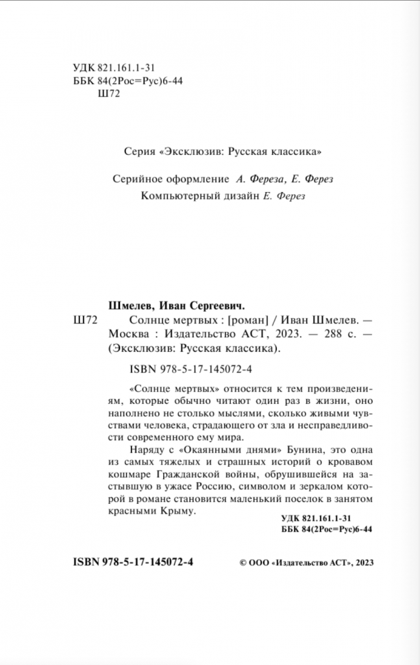 Книга: Солнце мертвых (Шмелев Иван Сергеевич); ИЗДАТЕЛЬСТВО "АСТ", 2021