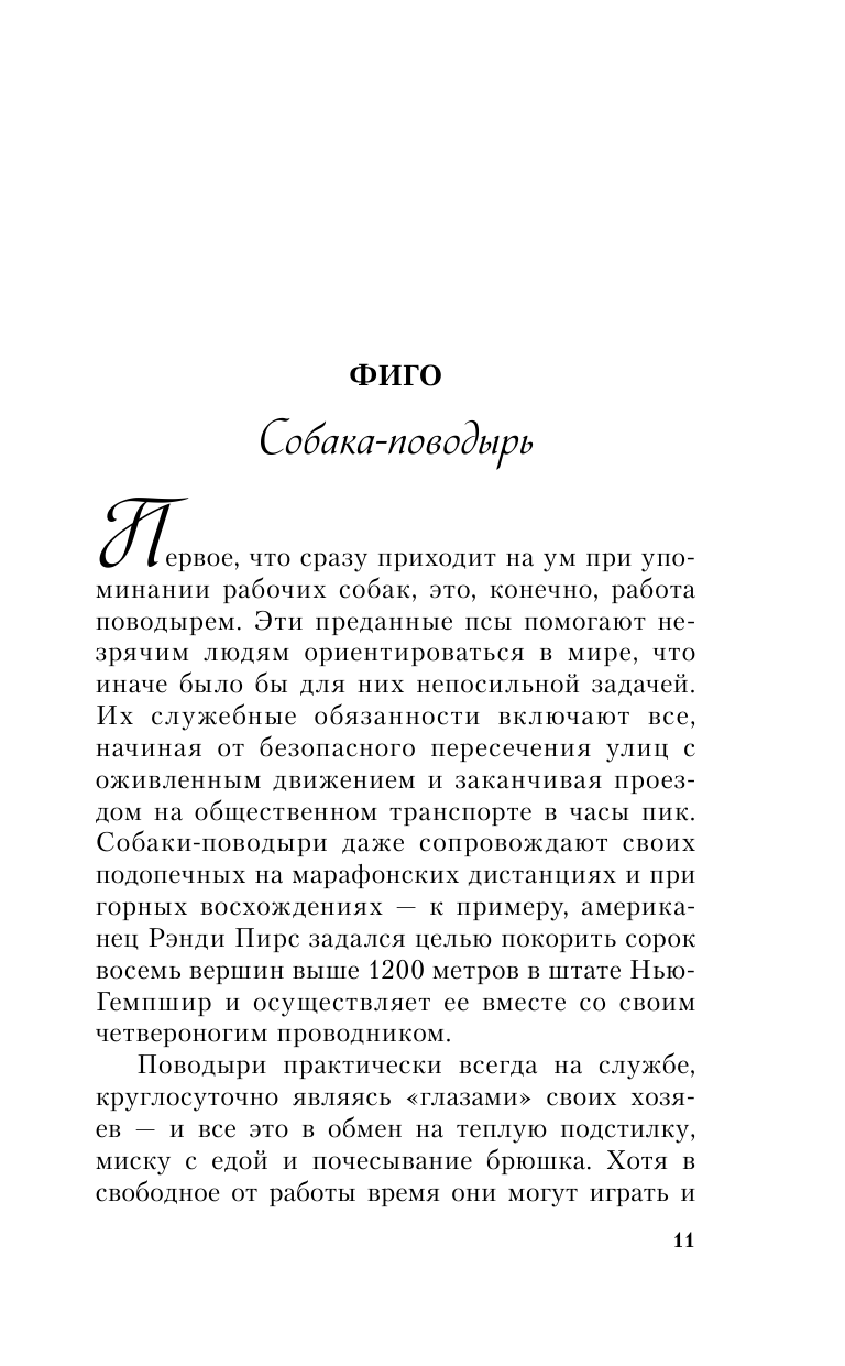 Очень нравится тема про собак, часто покупаю такие книги. А тут еще и такая привлекательная цена. Хорошая бумага, нормальный шрифт, симпатичная собачья мордашка на обложке. Каждая глава - это отдельная история. Всегда было интересно узнать, как собака попадает в ту или иную профессию, или в помощь специалисту, или просто прославляется в социальных сетях. Я осталась довольна, почерпнула много интересной информации. Прочла книгу за пару дней. Рекомендую.