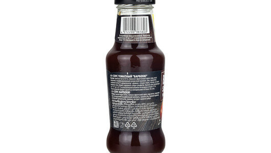 | Состав | Томатная паста 45%, глюкозно-фруктозный сироп, вода, уксус спиртовой, модифицированный кукурузный крахмал, соль, краситель: сахарный колер IV, ароматизатор: "дымок"; специи |
