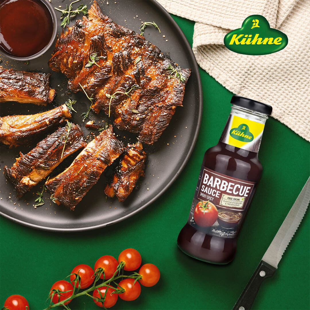 Томатный соус Kuhne Барбекю с ароматом дымка, дополняющим пикантные специи, отлично подойдет для приготовленных на решетке и открытом огне мяса, птицы, колбасок и даже овощей. Если же выехать на пикник не позволяет погода, пожарьте те же самые продукты на сковороде или в духовке благодаря этому варианту кетчупа с эффектом копчения и остро-сладкими нотами во вкусе вы сможете ощутить себя, как во время отдыха на природе.
