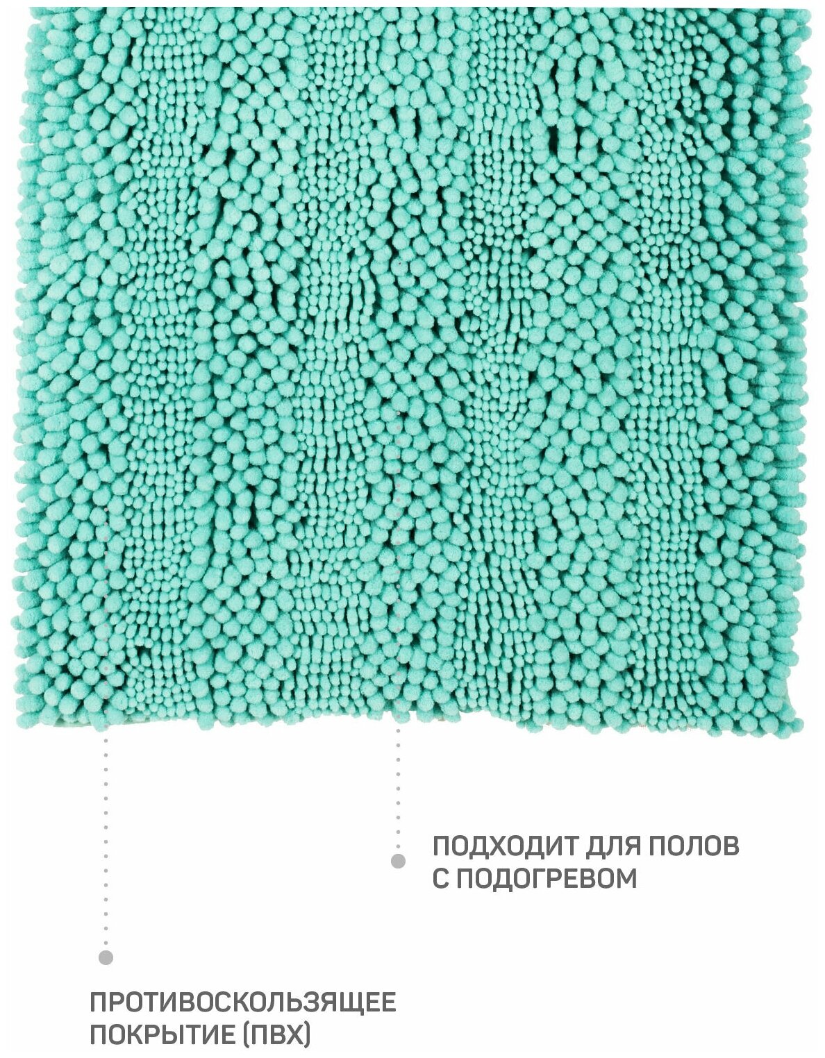 Стильный большой коврик для ванной комнаты цвета тиффани Рейдар прямоугольной формы из мягкой микрофибры высотой 2см не скользит на кафеле, керамограните, линолеуме и других напольных поверхностях и не боится пола с подогревом. Ковер в ванную имеет оптимальный размер 50х80см для душевой. Хорош как прикроватный коврик под ноги или в детскую. Быстросохнущий, впитывающий влагу материал обеспечивает комфорт и легкий массажный эффект для ног после принятия душа и ванны. Настоящее наслаждение – зарыться в мягкий ворс. Нескользящая мягкая основа с прорезиненными полосками не боится пола с подогревом.Туалетный ковёр для санузла не требует сложного ухода, его можно постирать в стиральной машине или пропылесосить. Подойдет для любых напольных покрытий от каменного пола, плитки, кафеля до дерева бани, дачи. Половик найдет применение в детской спальне для ребенка, как прикроватный комнатный аксессуар, на кухне, в коридоре, прихожей. Ковер для ванной – не только дешевый и простой способ привнести уют и тепло, но и отличный инструмент для дизайна и декора. Добавьте ярких акцентов или подчеркните цвета интерьера с помощью модного и яркого текстиля для дома. В подарок на праздник мужчине или женщине. Можно приобрести для друзей к завершению ремонта, переезда, на новоселье.