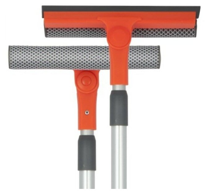 Стекломой джордж с длинной телескопической ручкой и поворотным механизмом щетки - легкий и надежный ручной инструмент для мытья стекол, который прослужит долгие годы. Длину прочной алюминиевой ручки можно изменять от 45 до 75 см, длина рабочей поверхности – 20 см. Рабочая поверхность состоит из двух частей – поролоновой насадки и резинового водосгона.Поролоновая насадка в оплетке из полиэстера отлично впитывает воду и успешно отмывает все основные виды загрязнений. Прямоугольная форма насадки позволяет эффективно собрать грязь в углах.Водосгон из качественной резины плотно прилегает к стеклу, благодаря чему на стекле не остается разводов.Благодаря компактным размерам щетке для окон не требуется много места для хранения.Удобный инструмент для уборки дома ускоряет мытье стекол и дарит хорошее настроение.