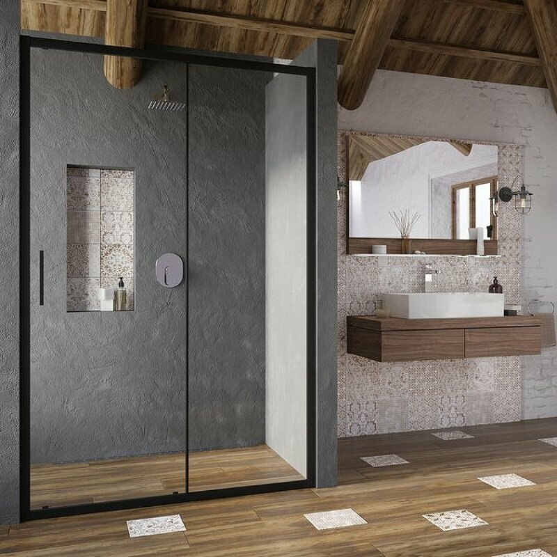 Душевая дверь Ravak Blix Slim BLSDP2-110 X0PMD0300Z1 профиль Черный матовый стекло Transparent