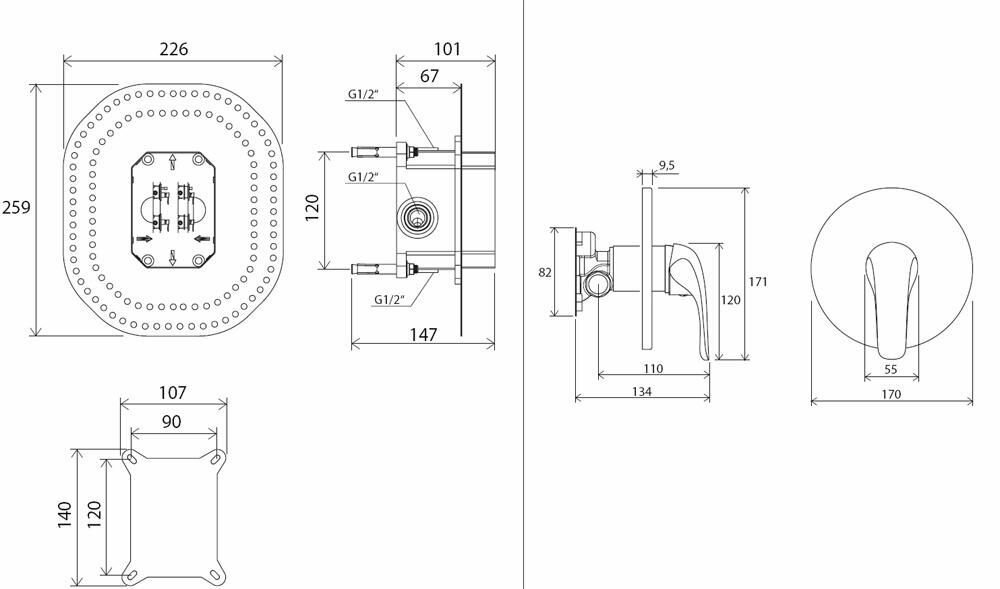 Верхняя часть для смесителя скрытого монтажа без переключателя Ravak Rosa RS 066.00 без встраиваемого механизма R-box (заказывается отдельно). R-box состоит из пластиковой основы и нижней части смесителя скрытого монтажа, изготовленной из латуни. Монтаж верхней части проводится после облицовки стены.