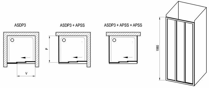 Сверхпрочные, практически неизнашиваемые душевые двери. Идеальны для установки в общественных местах. Идеальное решение для ниш размерами 80 - 130 см. Изделие состоит из одной неподвижной части и двух подвижных частей. Повернув изделие на 180° получится левый/правый варианты входа. Устанавливается в облицованный кафелем угол ванной комнаты на поддоны RAVAK Aneta, Angela, Perseus, Perseus Pro, Perseus Pro Flat, Perseus Pro Chrome, Perseus Pro 10°, Gigant Pro, Gigant Pro Flat, Gigant Pro Chrome, Gigant Pro 10° или непосредственно на пол со встроенным душевым каналом или трапом. Комбинируя одну неподвижную стенку типа APSS с душевыми дверями можно создать "Г" образную душевую кабину, комбинируя две неподвижные стенки типа APSS и душевые двери - "П" образную душевую кабину. С помощью регулировочного профиля АNPS можно выровнять неровности строительного отверстия.¶Возможно изготовление атипичных душевых дверей.