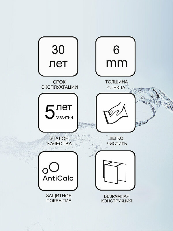 - Витраж: безопасное стекло transparent (прозрачное) толщиной 8 мм с покрытием AntiCalc.