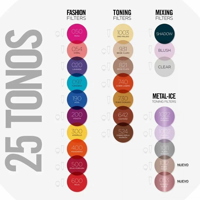 2. Тонирующие фильтры. Для блондинок и брюнеток. Тонирующие фильтры с максимальной точностью и широким ассортиментом, обеспечивают безупречный цвет от корней до кончиков. Используйте их между процедурами окрашивания или сразу после предварительного осветления волос.