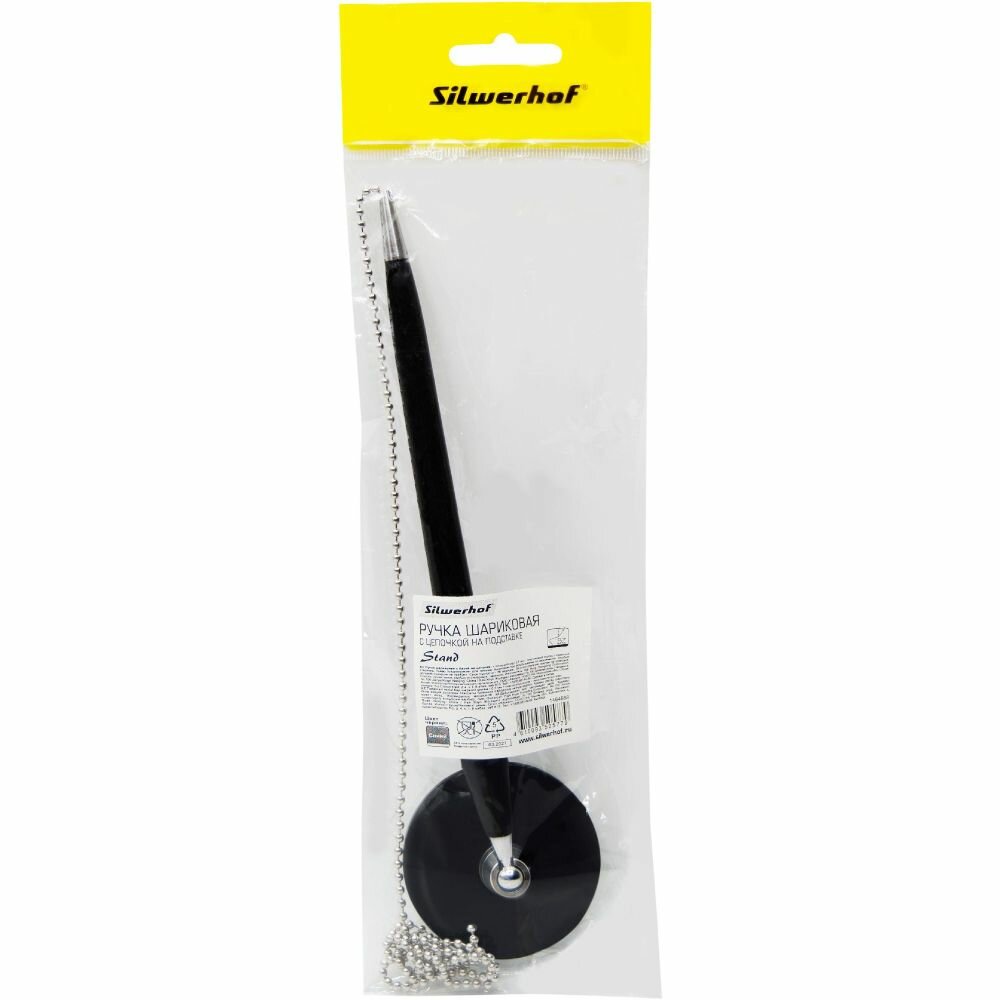 Ручка шариков. Silwerhof Stand черный d=0.7мм синие индив. пак.ев. на подставке сменный стержень 50 шт./кор.
