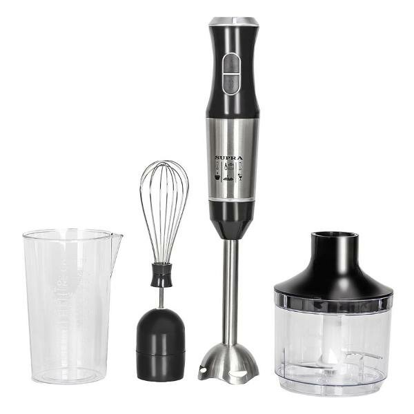 Погружной блендер Supra , мощность 800 Вт, имеет 2 скорости, а также регулировку скорости вращения. Съемные части предназначены для мытья в посудомоечной машине.