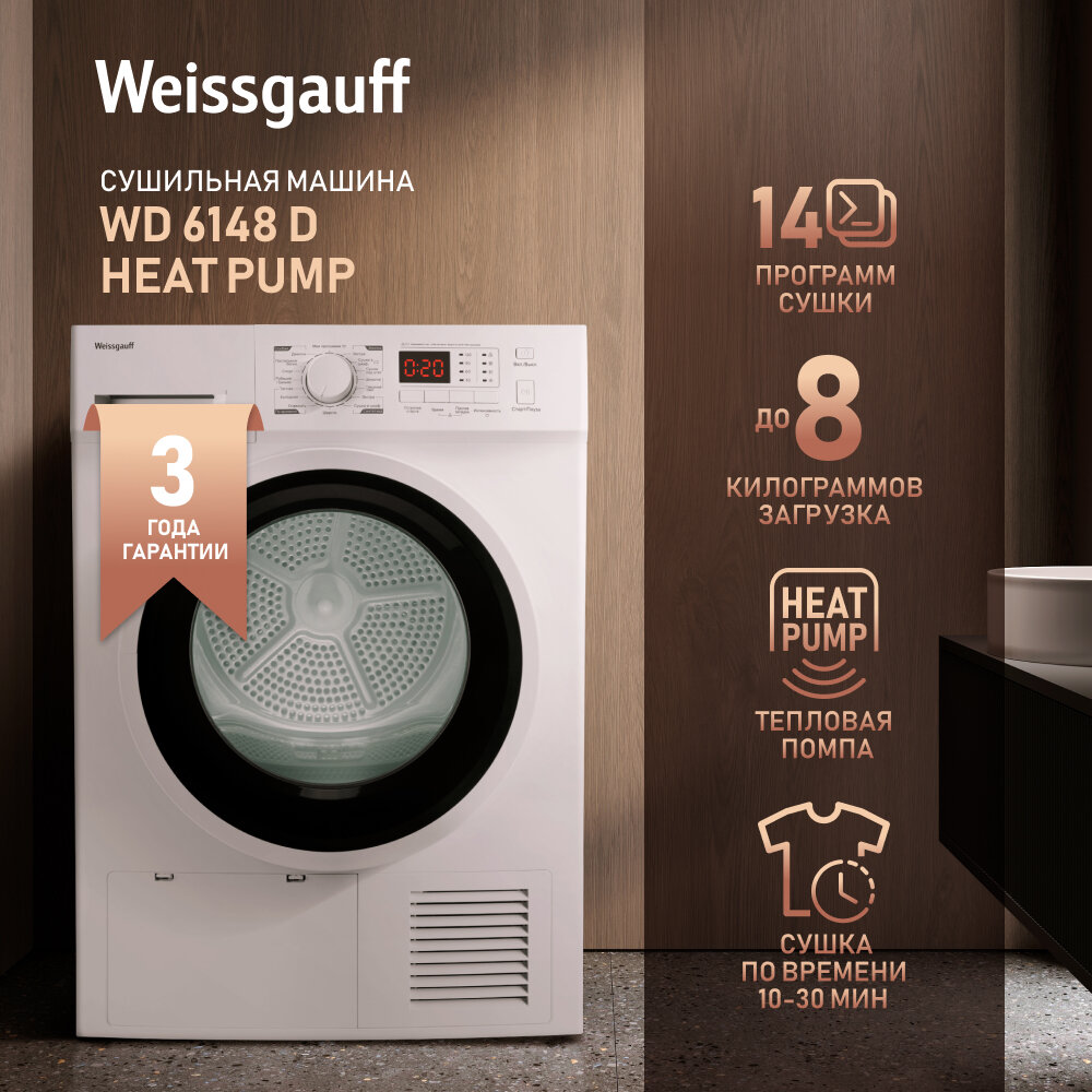 Сушильная машина WEISSGAUFF WD 6148 D Heat Pump белый 429036 (размер: стандартная)