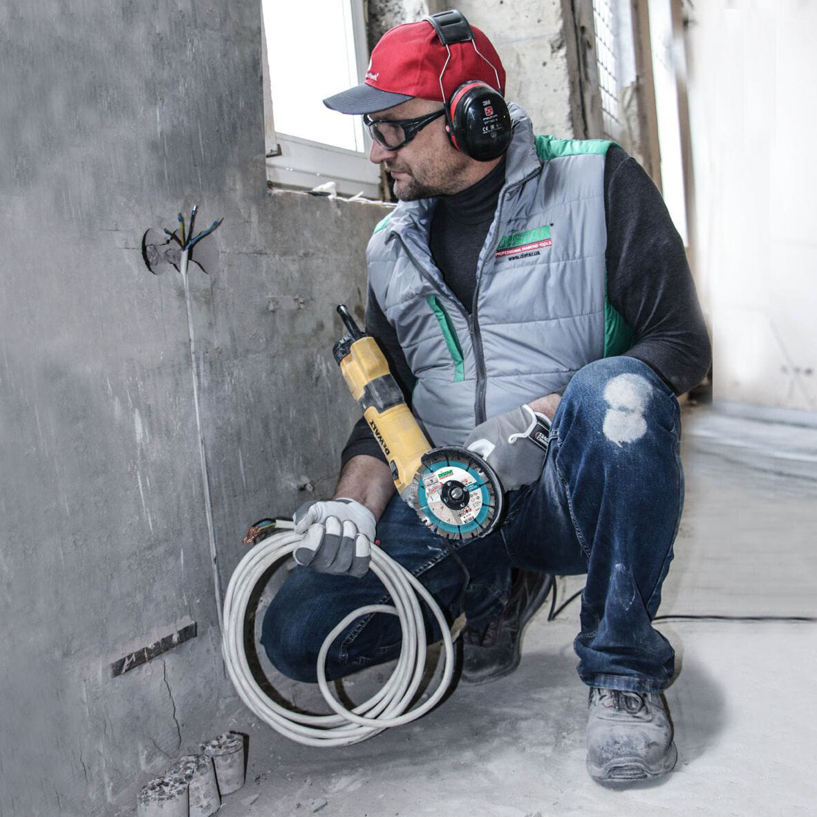 Благодаря продвинутой форме сегментов, диск эффективно охлаждается в закрытых кожухах штроборезов, поэтому этот круг наилучшим образом подходит для выполнения работ по штроблению под электропроводку и водопровод.