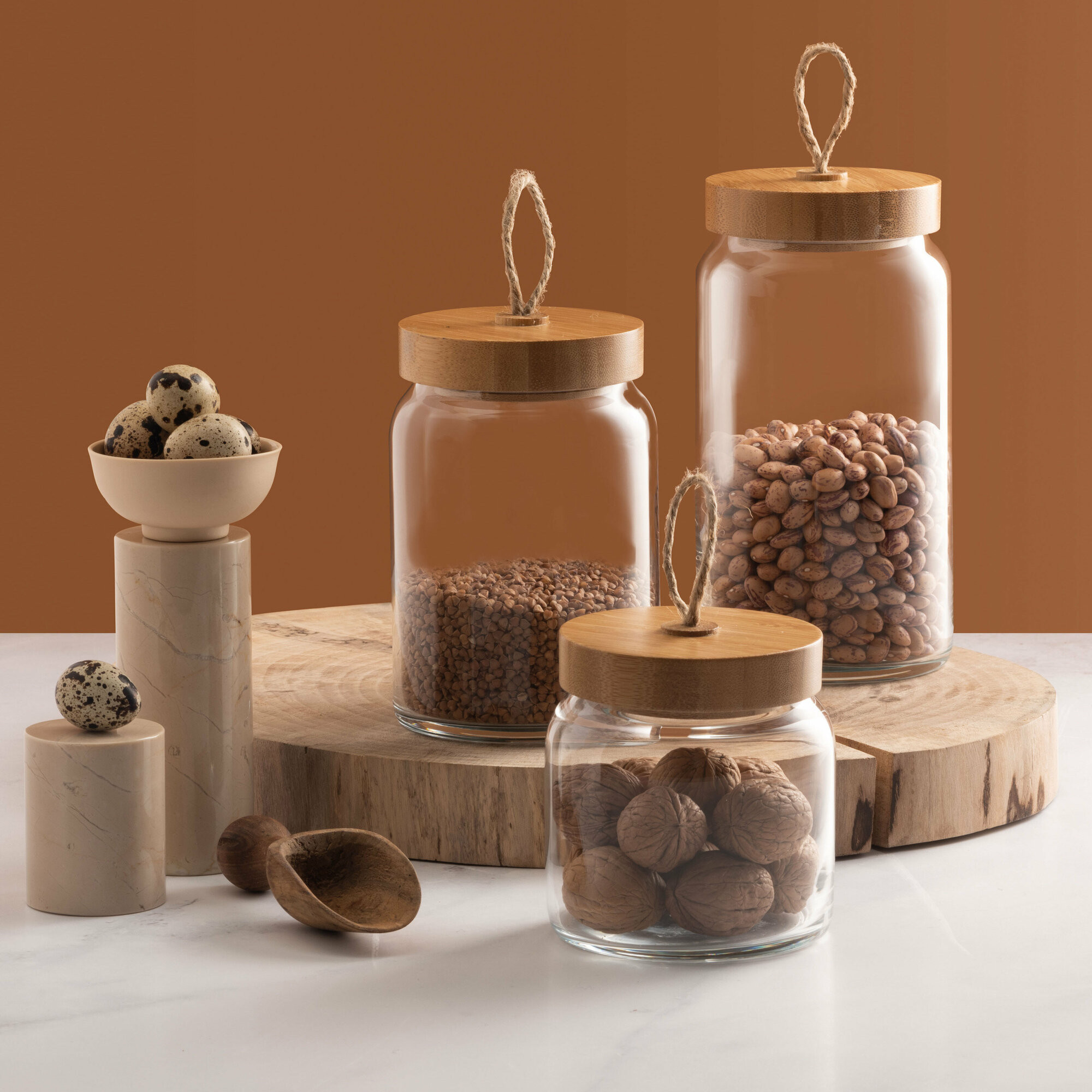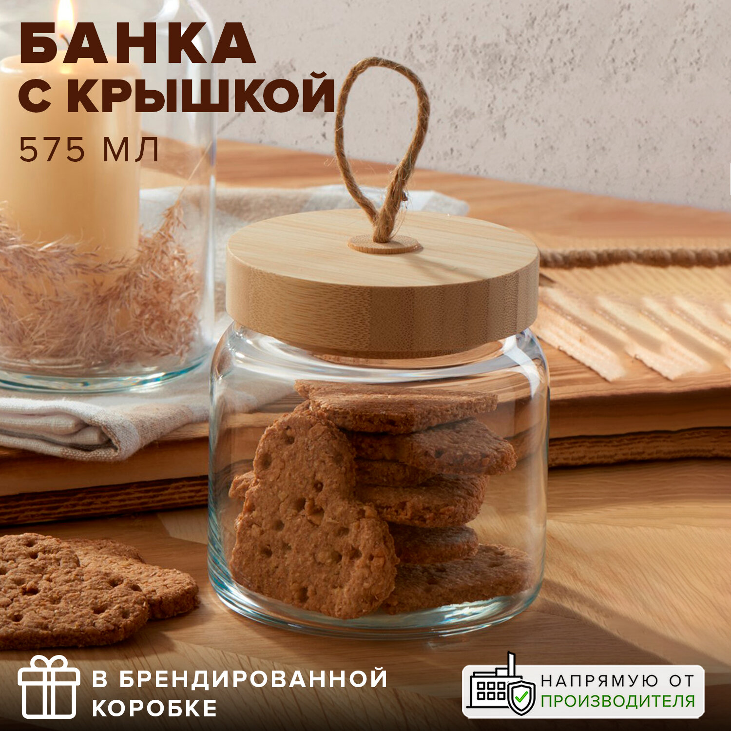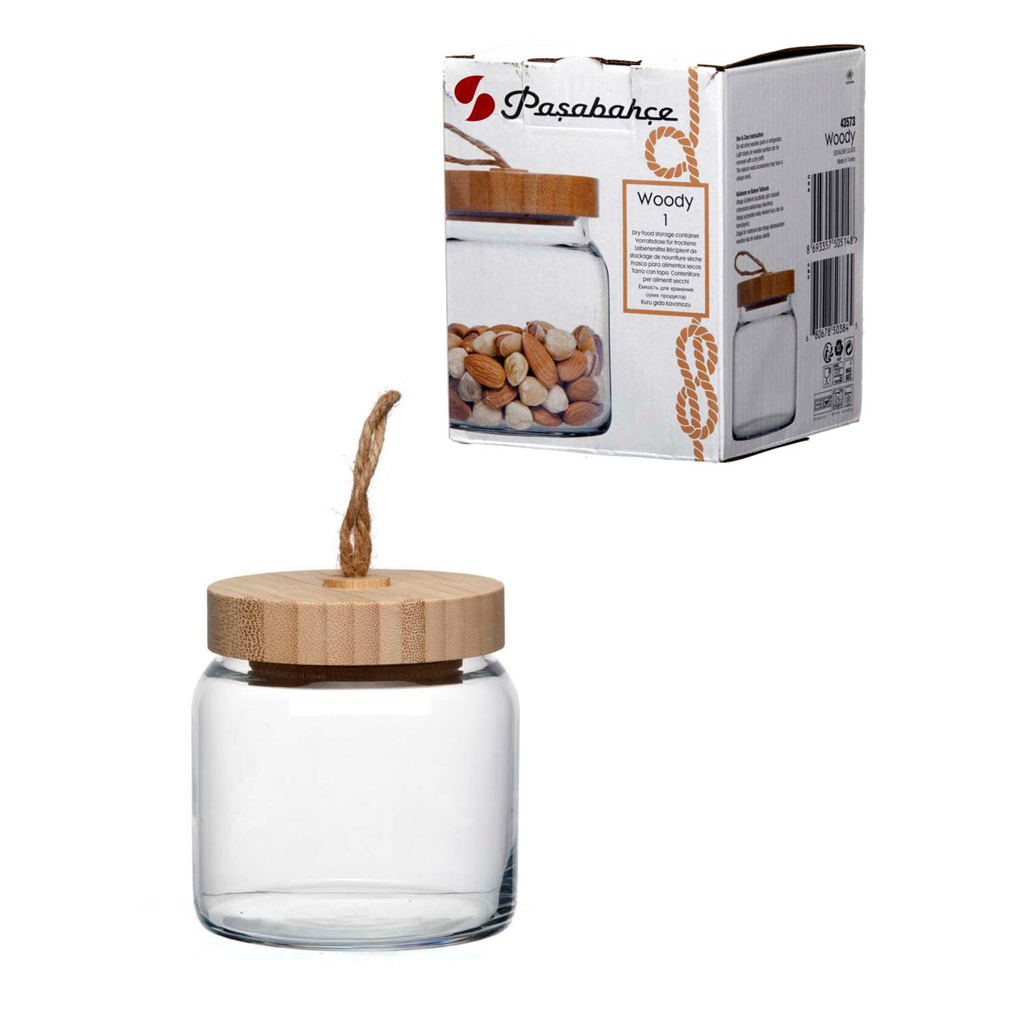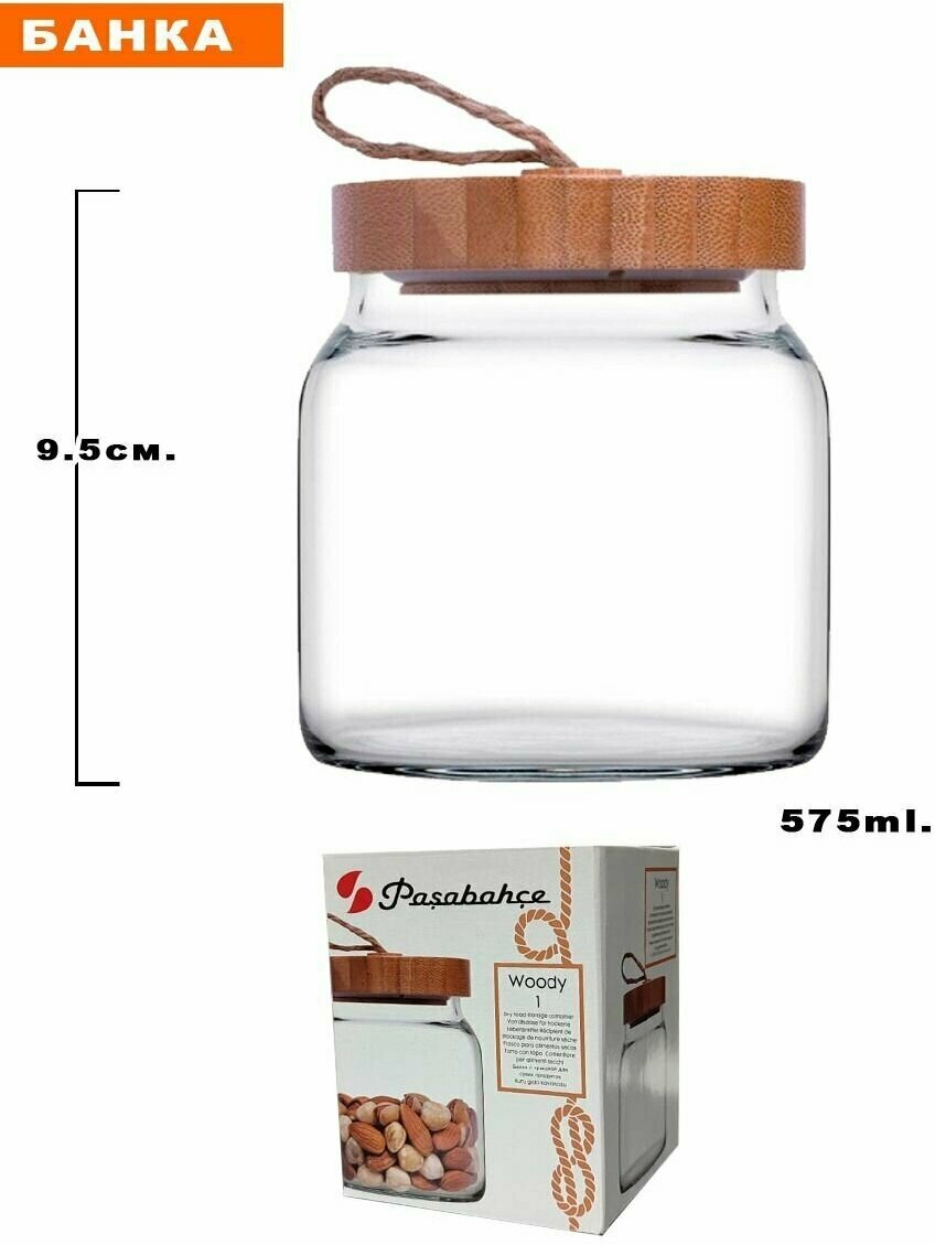 Банка для хранения с бамбуковой крышкой Pasabahce 575 мл Емкость для хранения с деревянной крышкой 575 мл