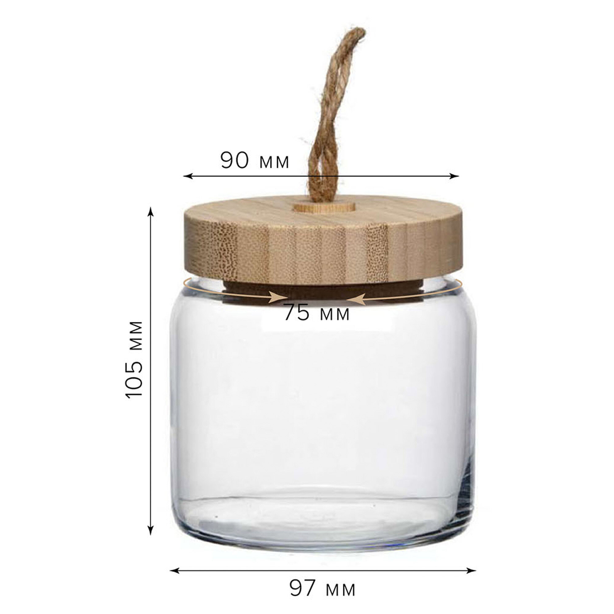 Банка выполнена из прочного стекла. Плотно прилегающая крышка банки из дерева защищает продукты от влаги и посторонних запахов, защищает сыпучие продукты от рассыпания и облегчает процесс открытия банки. В такой банке удобно хранить крупы, специи, орехи, а также делать заготовки.