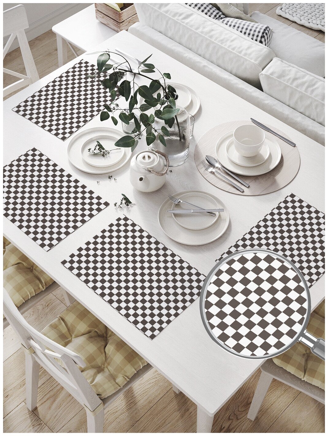 Сервис сравнения цен СкидкаГИД предлагает сравнить цены на товар «Комплект тканевых салфеток для сервировки стола JOYARTY Комплект салфеток для сервировки стола Шахматная клетка 46х32 см 4 шт.»