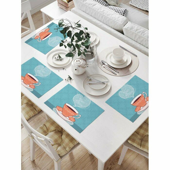 JoyArty Комплект салфеток для сервировки стола «Время выпить чаю» (32х46 см 4 шт.) Комплект салфеток для сервировки стола Время выпить чаю 46х32 см 4 шт.