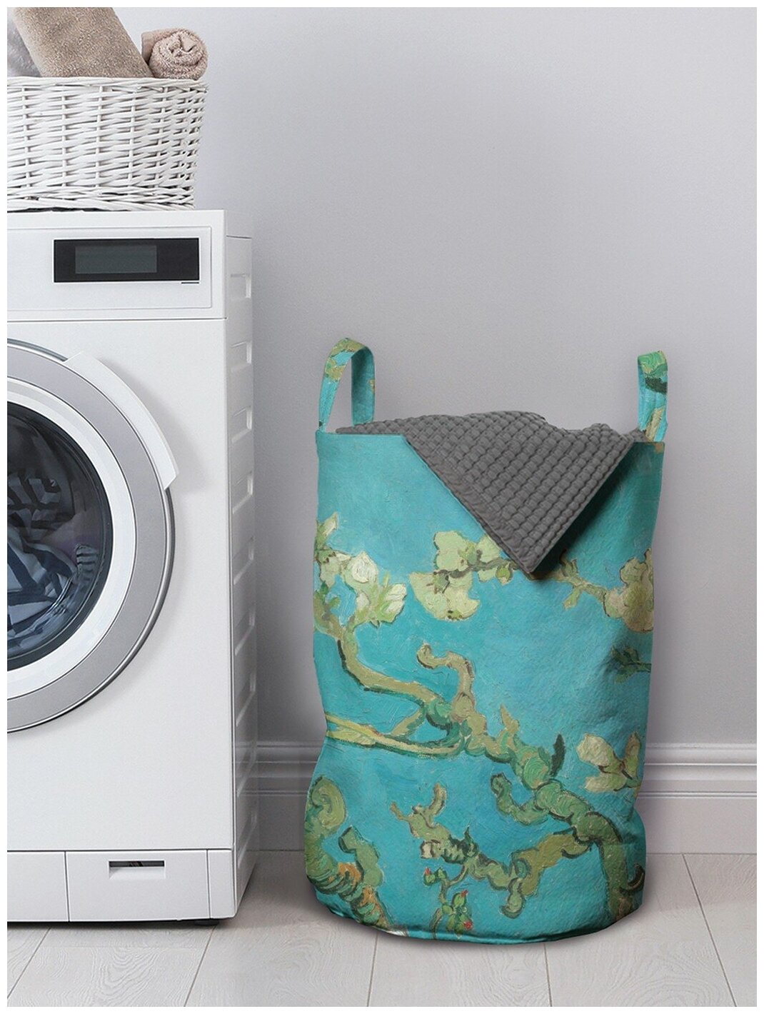 Многие хозяйки сетуют, что им некуда складывать предназначенное для стирки бельё, но громоздкие пластмассовые бельевые короба покупать не спешат. Действительно, визуально они делают ванную комнату меньше, причем всегда будут теснить вас, даже оставаясь свободными. Этих недостатков лишена мягкая корзина для вещей "Ветви с миндальным цветком", пошита из прочной и не мнущейся ткани – войлок. Если всё бельё перестирано, её можно просто сложить и отправить на хранение в шкафчик. Продолжая сравнение с традиционными вариантами, следует отметить, что ни один пластмассовый ящик не способен хоть как-то украсить интерьер ванной комнаты. Зато декорированная оригинальным принтом корзина для хранения белья будет отлично смотреться на фоне даже самой изысканной коллекции кафельной плитки.