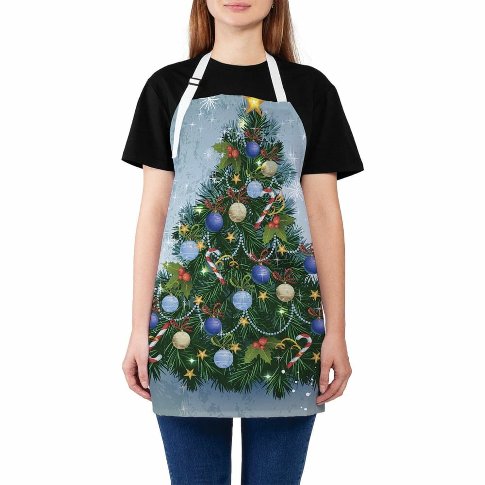 Сервис сравнения цен СкидкаГИД предлагает сравнить цены на товар «Кухонный фартук JOYARTY Фартук женский для готовки Ель с цветными шариками 65х65х28 см»