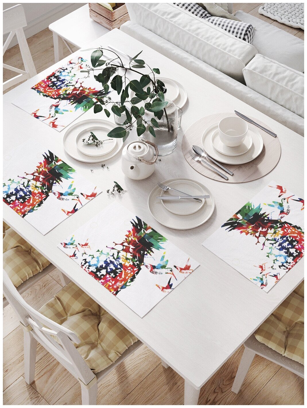 Рисунок на салфетки переносится при помощи сублимационной печати. Такой способ позволяет наносить самые разнообразные изображения, используя всю цветовую гамму. Благодаря этому у вас есть огромный выбор принтов. Можно подобрать салфетки к любому стилю, цвету и даже празднику. Кстати, комплект сервировочных салфеток - отличный подарок, которому будут рады в любом доме.