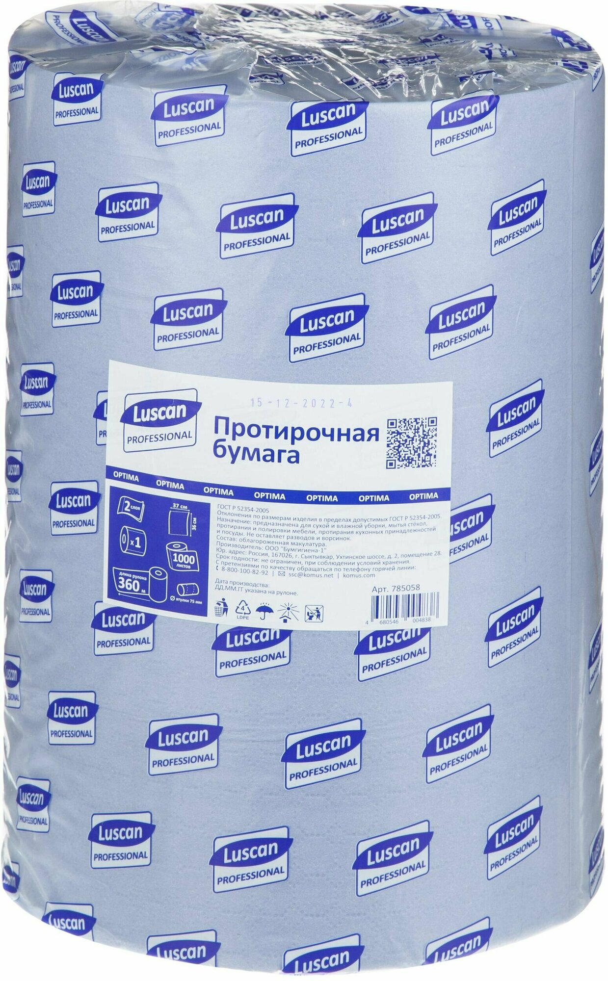 Протирочная бумага Luscan Professional голубая (360 метров в рулоне) 785058 Professional Бумага протирочная 2-х слойная 1000 листов 360 м
